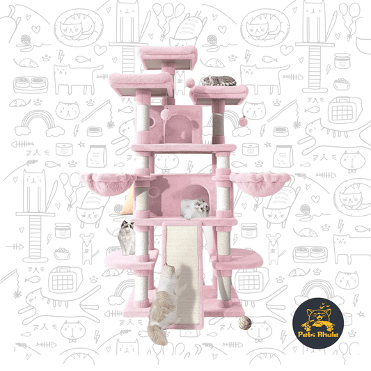Large Cat Tree Plush Cat Tower with Caves Condos Platforms Scratching Board